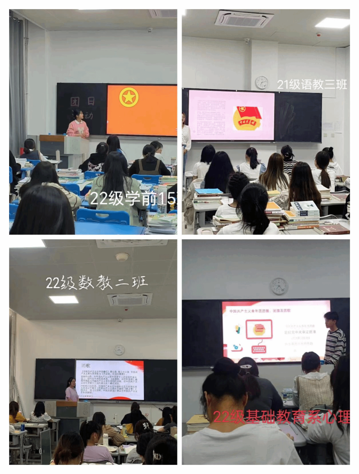 在本次团日活动中,各团支部根据《中国共产主义青年团章程》学习团属宣传物的使用规范,使入团积极分子和团员了解团旗、团徽、团歌的历史和精神内涵,遵守团旗、团徽、团歌的使用礼仪。