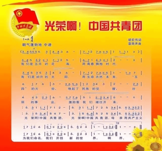 中国共产主义青年团团歌为《光荣啊,中国共青团》。